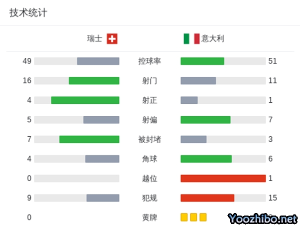 意大利0-2瑞士 瑞士连续2届进8强 意大利攻防糟糕