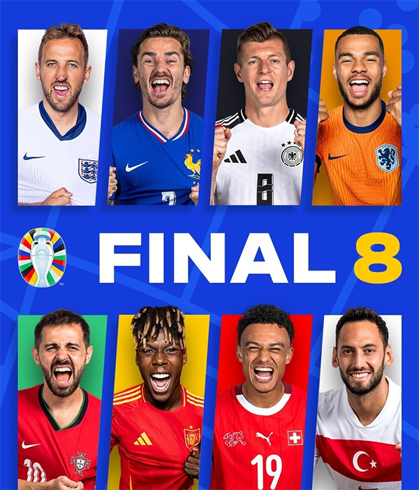来源:24直播网07-03 15:5424直播网讯 北京时间7月3日凌晨,欧洲杯8强正式出炉。具体晋级的8支球队为瑞士、德国、英格兰、西班牙、法国、葡萄牙、荷兰和土耳其。