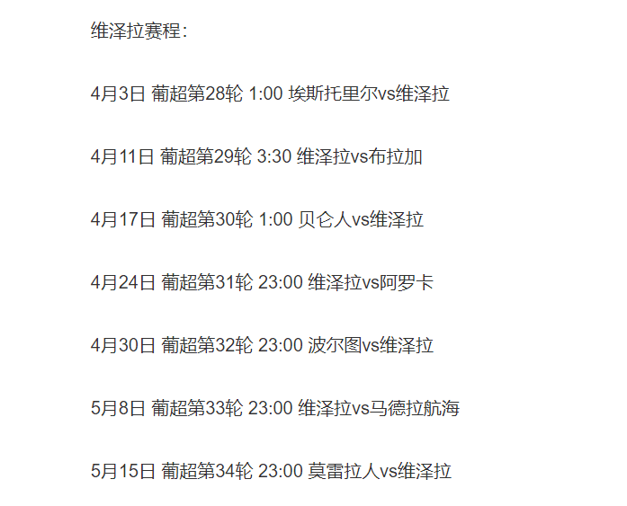 按照赛程安排,维泽拉下一场比赛是4月3日凌晨对阵埃斯托里尔,郭田雨有望在这场比赛迎来自己的首秀。葡超联赛还剩下7轮比赛,维泽拉的对手还包括波尔图这样的强队,郭田雨要尽快适应球队的节奏,争取可以尽快出场,抓住难得的留洋机会,进一步提升自己。