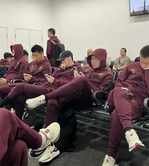 在这张照片中,国脚们疑似在澳大利亚机场等候转机。而为了打发等待时间,王上源、林良铭、蒋圣龙等国脚们纷纷悠哉地翘起二郎腿,瘫坐在椅子上,眼神迷茫地刷着手机。大多数国脚都戴着蓝牙耳机,沉浸在自己的世界中,彼此间没有交流。