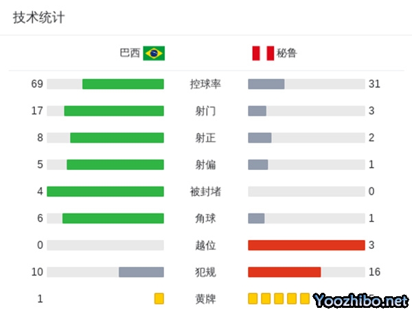 巴西4-0秘鲁两连胜升至南美区第4 佩雷拉凌空斩拉菲尼亚双响