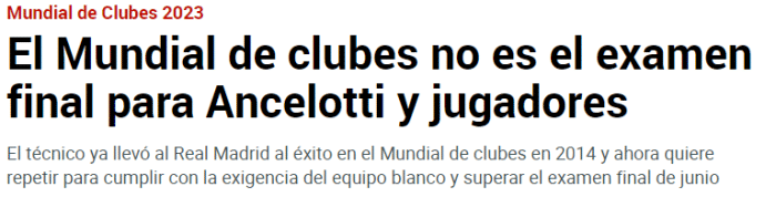 《马卡报》表示,皇马高层不会通过一时冲动作出决定,他们会通过分析来对球队进行审视,安切洛蒂和球员的“期末考核”不是在世俱杯。
