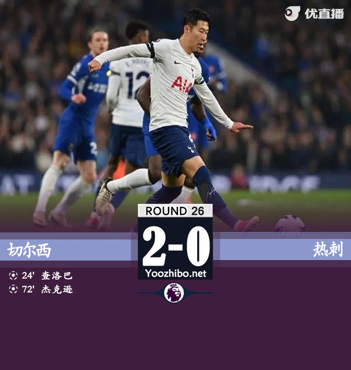 24直播网讯:北京时间5月3日,英超第26轮补赛,切尔西主场迎战热刺。上半场,杰克逊失单刀,帕尔默补射空门打飞,查洛巴头球建功先拔头筹。易边再战,杰克逊头球补射破门。最终切尔西2-0热刺。积分榜方面,切尔西51分暂升第八,热刺60分仍第五。