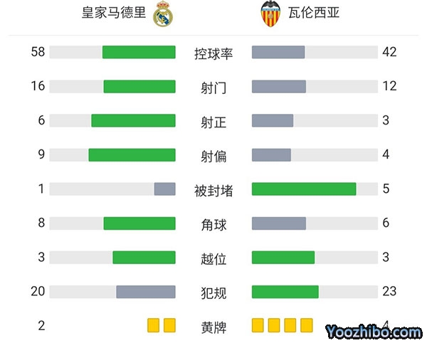 全场比赛结束,最终皇马总比分5-4瓦伦西亚晋级决赛!