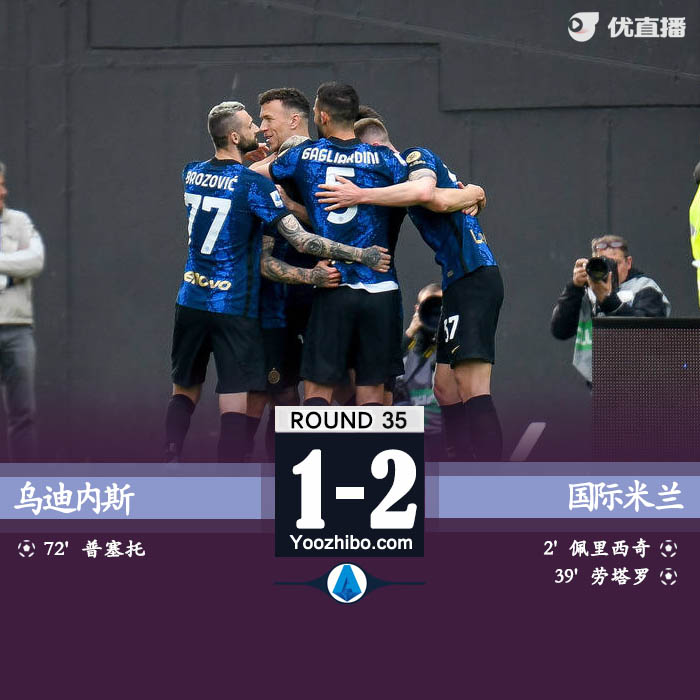 24直播网 5月2日讯 北京时间5月2日凌晨0点整,2021-22赛季意甲第35轮在弗里乌利体育场展开角逐,国际米兰客场挑战乌迪内斯。上半场佩里西奇先拔头筹,哲科造点,劳塔罗扩大比分,下半场哲科失单刀,普塞托扳回一城,巴雷拉伤退。最终国际米兰客场2-1战胜乌迪内斯,积分榜方面,国米积75分,距离AC米兰2分位居第2名。