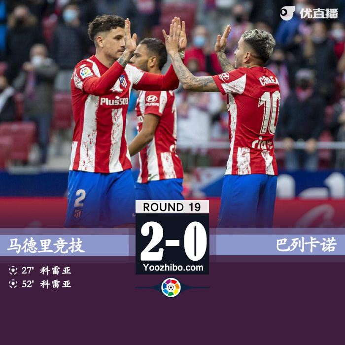 - 【集锦】[咪咕全场集锦] 西甲-科雷亚梅开二度卡拉斯科中柱 马竞2-0巴列卡诺2022-01-03 08:23:12