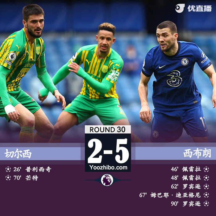 24直播网4月3日讯 北京时间4月3日晚19:30,英超第30轮比赛打响,切尔西坐镇斯坦福球场迎战西布朗。上半场,普利西奇首开记录,蒂亚戈-席尔瓦两黄变一红被罚下,半场结束前佩雷拉梅开二度反超比分;下半场,罗宾逊梅开二度、迪亚涅破门,芒特扳回一城。最终,十人切尔西主场2-5爆冷惨败西布朗。多赛一场的情况下积51分排在第4,仅领先身后的西汉姆2分。