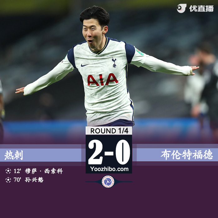 24直播网1月6日讯 凌晨3:45,联赛杯半决赛,热刺迎战布伦特福德。上半时雷吉隆献助攻,穆萨-西索科头球破门。下半时孙兴慜单刀扩大比分,恩东贝莱助攻+中柱,达席尔瓦恶意蹬踏霍伊别尔染红,霍伊别尔血染赛场。最终,热刺2-0击败布伦特福德进入决赛,他们将与曼联与曼城之间的胜者争冠。