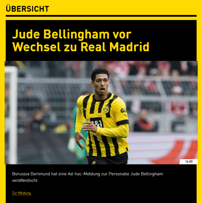 现年19岁的贝林厄姆已经是欧洲炙手可热的中场球星,本赛季贝林厄姆为多特出战42场,收获14球7助。目前这位英格兰中场球员的德转最新身价为1.2亿欧元。他与多特蒙德的合同原本要到2025年才到期。