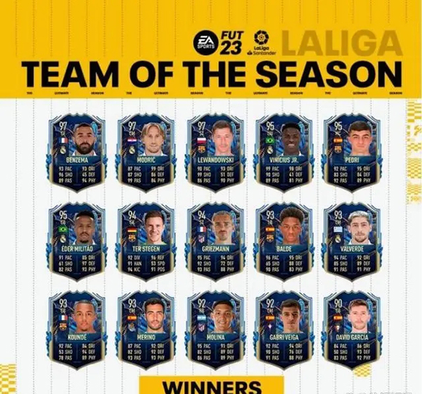 西甲公布赛季最佳阵容:莱万、莫德里奇领衔 本泽马在列