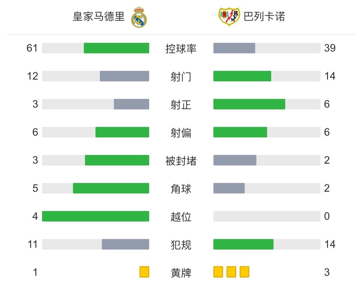 全场比赛结束,皇马2-1巴列卡诺。
