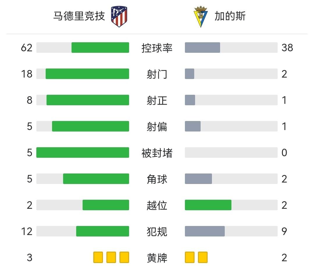 马德里竞技首发:1-格尔比奇、16-莫利纳(88'12-多尔蒂)、20-维特塞尔、2-希门尼斯、22-埃尔莫索、21-卡拉斯科(64'10-安赫尔-科雷亚)、5-德保罗、6-科克、11-勒马尔(72'3-雷吉隆)、19-莫拉塔(71'24-巴勃罗-巴里奥斯)、8-格列兹曼