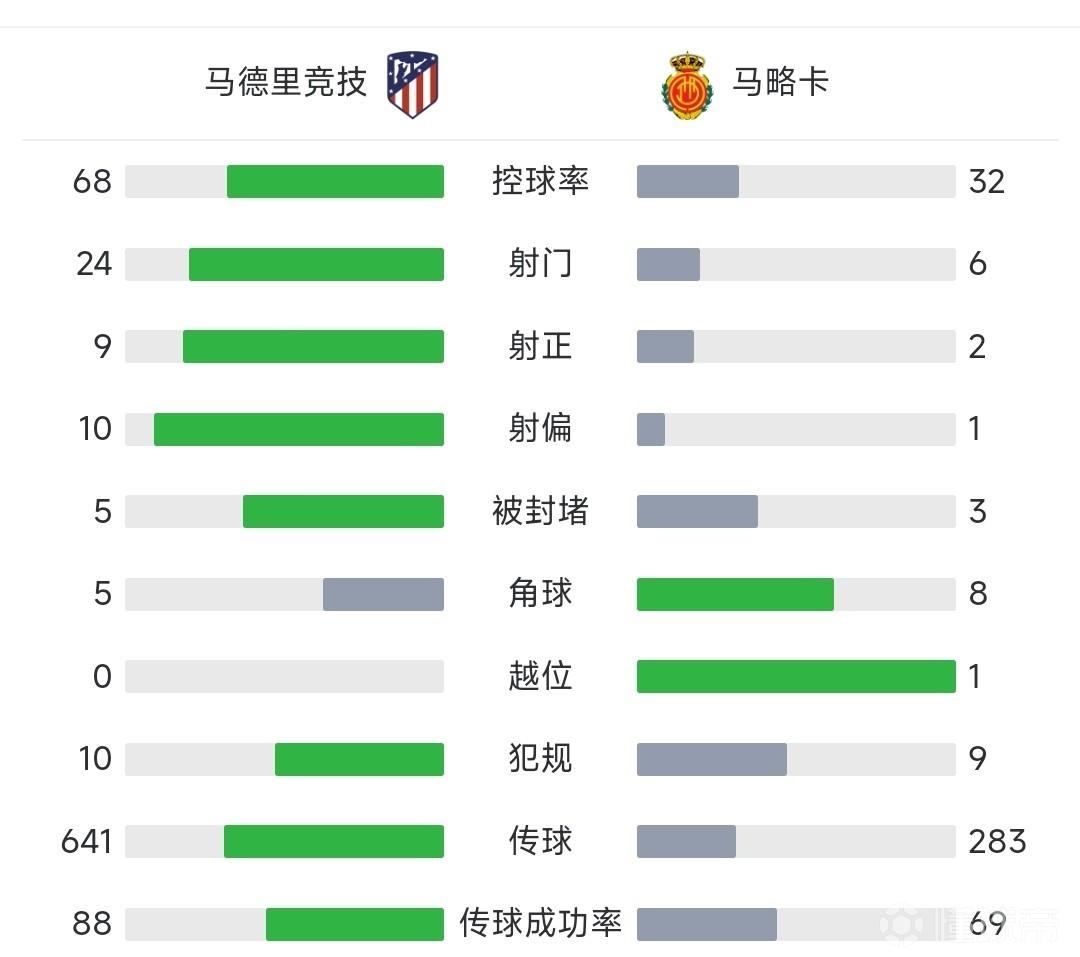 第47分钟,莫利纳前场右路送出传中,莫拉塔禁区中路头球建功,马德里竞技2-1马洛卡。