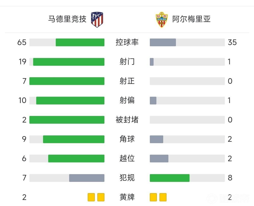最终马竞主场2-1击败阿尔梅里亚,取得联赛6连胜。