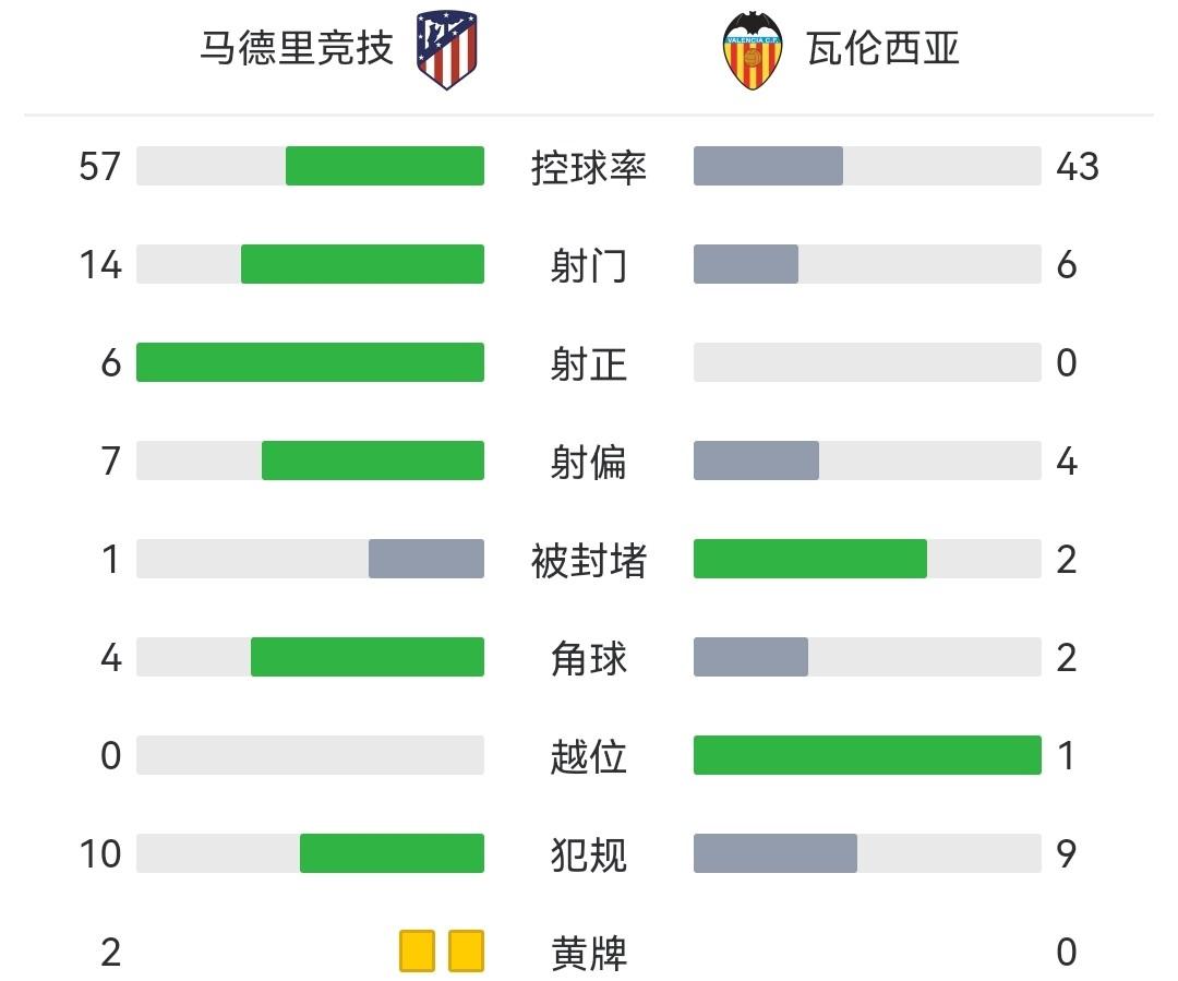 全场比赛结束,马竞主场3-0瓦伦西亚。