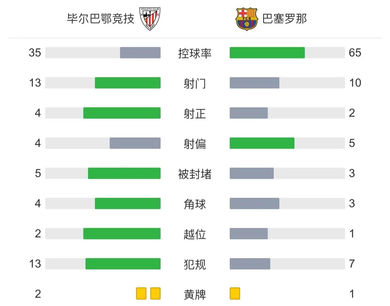 最终巴萨1-0毕尔巴鄂竞技,9分优势领跑积分榜。