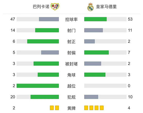 全场结束,最终巴列卡诺3-2皇家马德里。