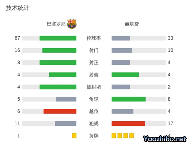 全场比赛结束,巴塞罗那4-0赫塔费。