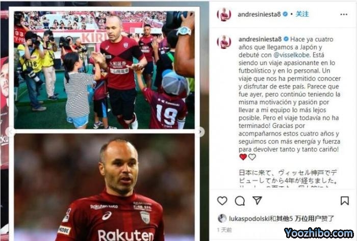 伊涅斯塔在社媒用西语和日语表示:“不知不觉,距离我代表神户胜利船上演首秀已过了4年,无论是足球层面还是人生经历,对我而言这是一段十分美妙的经历,这4年我逐渐了解这个国度,十分享受在这里踢球的时光。首秀之时恍如昨日,在我刚来的时候就立志要带领球队走上一个新高度,时刻保持热情与活力,这些目标至今依旧未变。