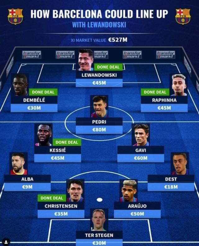实力可叫板皇马?巴萨首发强阵出炉:莱万领衔4大新援!总价4.47亿欧