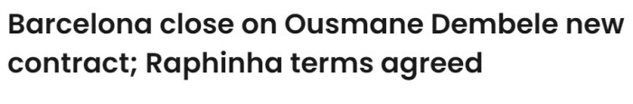 登贝莱和巴萨的合同6月底到期,他现在是自由球员,但双方依然在商谈续约。