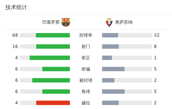巴萨1-0奥萨苏纳 18岁罗克替补处子球+造红