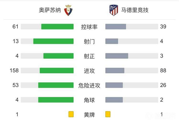 下半场补时6分钟,马竞客场3-0奥萨苏纳。