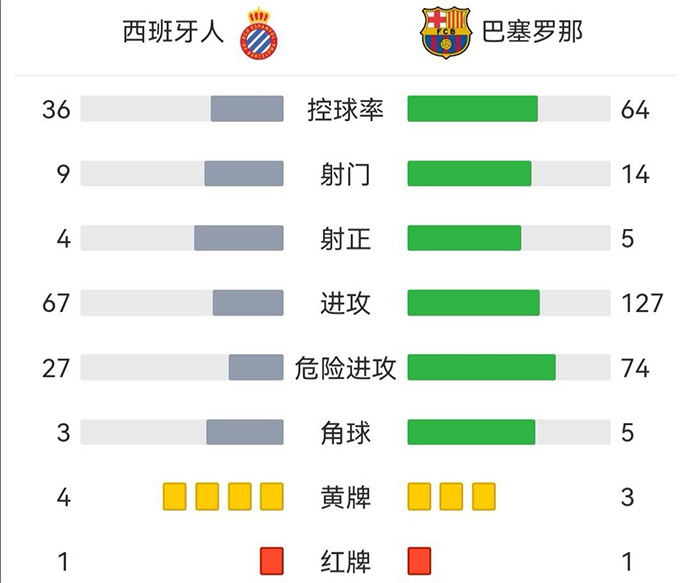 来源:24直播网02-14 11:40 24直播网讯:北京时间2月14日04:00,西甲第24轮迎来加泰德比,西班牙人坐镇主场迎战巴塞罗那。上半场,阿尔巴助攻佩德里开场1分钟凌空垫射闪击,达德尔世界波扳平比分,阿劳霍伤退。下半场,加维进球无效,德托马斯抓住埃里克-加西亚防守失误单刀破门,皮克与梅拉梅德终场前双双累计两黄被罚下,莫拉内斯替补席染红;阿达玛-特拉奥雷助攻吕克-德容完成读秒绝平,武磊替补未登场。最终,西班牙人主场2-2战平巴萨。