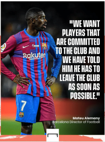 “我们想要忠诚于俱乐部的球员。我们告诉登贝莱他必须立刻离队。我们希望在1月31日之前出售他。”