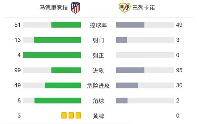 下半场易边再战,第53分钟马竞再度破门!左路洛迪快速突破后传到禁区内中路科雷亚包抄破门。马竞2-0巴列卡诺。