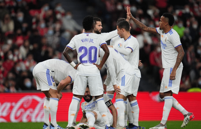 西班牙媒体“阿斯报”预测了皇马本场比赛的首发11人,认为安切洛蒂会派出433的阵容体系,让本泽马、阿扎尔、阿森西奥/罗德里戈搭档三前锋,卡塞米罗、莫德里奇、克罗斯搭档三中场,门迪、阿拉巴、米利唐、巴斯克斯搭档四后卫,门将库尔图瓦。