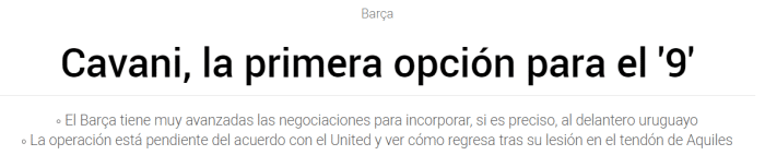 《每体》表示,巴萨和卡瓦尼的谈判很顺利,接下来他们要和曼联进行谈判,只要能够说服曼联放人,就能够敲定卡瓦尼。