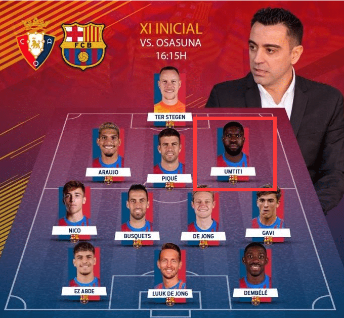 对奥萨苏纳时,哈维本赛季首次安排乌姆蒂蒂首发,意图吸引买家。但感兴趣的球队不仅无法支付他在巴萨薪水的十分之一,而且认为他不能再踢高水平的赛事。乌姆蒂蒂的合同到2023年6月底,巴萨已经认为他是一名“前球员”,清洗他的唯一方式就是解除合同。