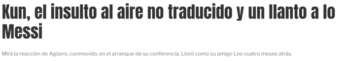《奥莱报》表示,当时现场的同声传译者负责将阿圭罗说的话翻译成英语,但他没有翻译这句话。此外,在4个月前梅西离开巴萨的发布会上,他也爆了这句粗口。