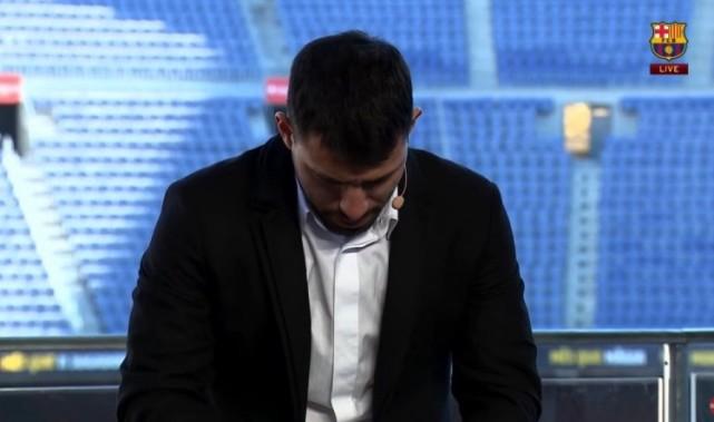 33岁阿奎罗泪洒退役发布会现场!巴萨全队出席,瓜帅到场力挺爱徒