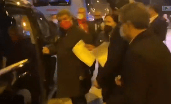 随后,拉波尔塔身边的人劝说他平复情绪,最终这位巴萨主席才冷静下来,并与球迷合影后离开。