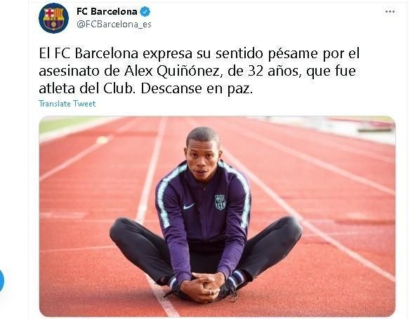 哀悼!巴萨短跑运动员奎诺内斯在厄瓜多尔遭枪杀