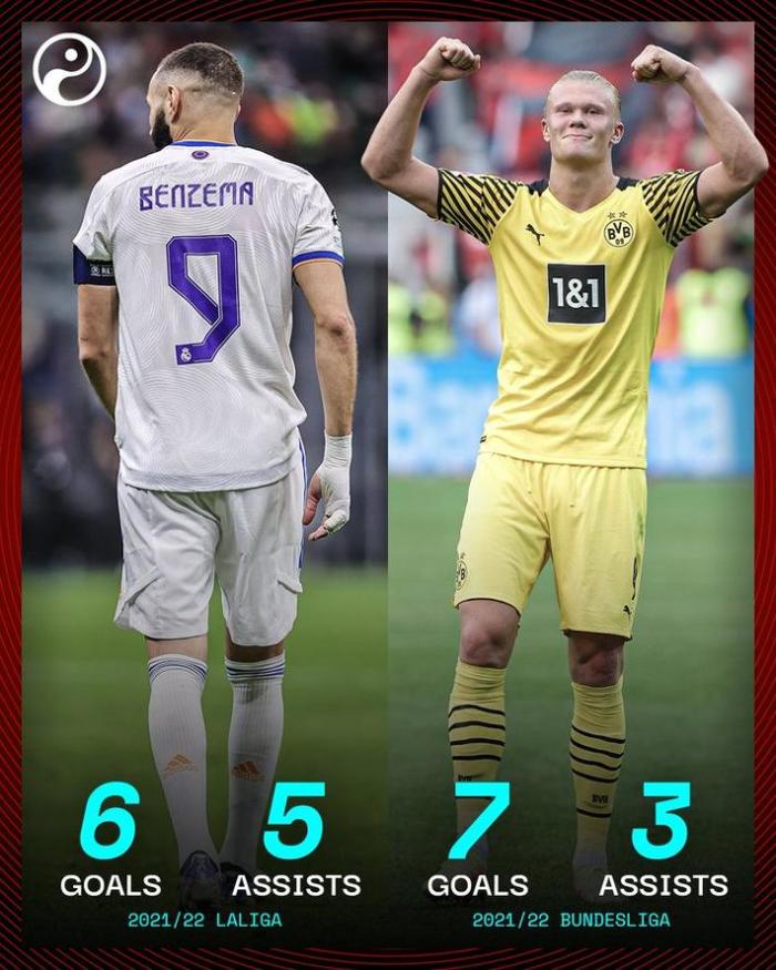不仅如此,本赛季至今五大联赛只有两名球员造了10+球,本泽马就是其中之一,而多特蒙德的当红炸子鸡哈兰德是另一位达成此成就的球员,他贡献7球3助,共造10球。