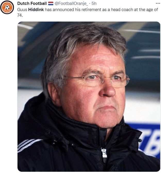 24直播网9月10日讯 据多家荷兰媒体报道,名帅希丁克已经宣布退休。