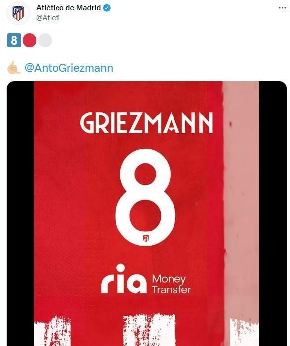 ,据马竞官方消息,格列兹曼新赛季将身披8号球衣。马竞8号此前属于萨乌尔,萨乌尔在昨日租借加盟至