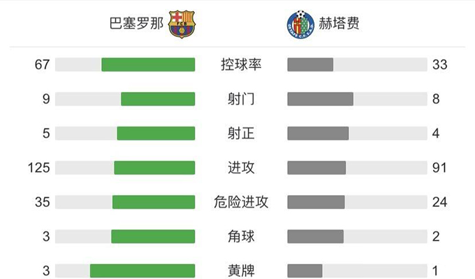 开场不到2分钟,巴萨取得梦幻开局,阿尔巴左路下底传中,中路包抄的罗贝托铲射破门,巴萨1-0领先赫塔费。