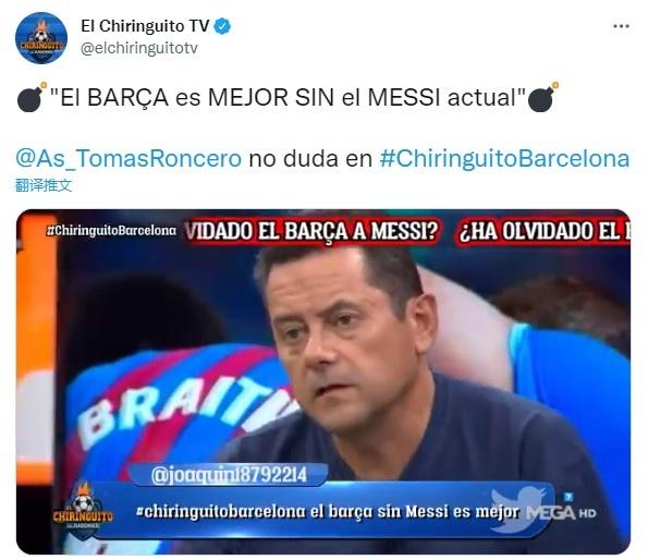 在巴萨4比2战胜皇家社会,取得了“开门红”之后,阿斯报主编隆塞罗就点评了本场比赛,他表示:【没有梅西,巴萨的表现更好了,更有掌控力了。】随后他表示:【我希望梅西留在巴萨,因为击败拥有梅西的巴萨感觉会更好。梅西只在乎钱、钱、钱。他或许已经厌倦了在欧冠经历中的8球和4球惨败。】不得不说,隆塞罗真的有点过分,梅西刚走,他就开始诋毁梅西,梅西都愿意降薪一半,这还是看重钱吗?不知道隆塞罗是怎么想的。