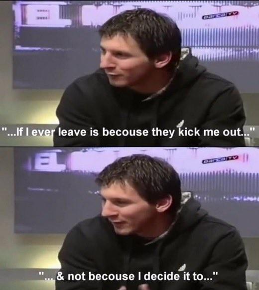 当时梅西说道:“如果我离开了巴萨,那肯定不是因为我决定这么做,而是他们把我踢走。”
