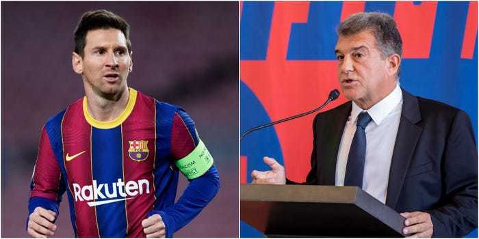 巴萨并不希望签署CVC注资协议,他们认为这会破坏欧超联赛的计划,西甲则希望通过CVC的注资协议来把欧超联赛一锅端了,因此西甲主席特巴斯让巴萨主席拉波尔塔只能在欧超联赛和梅西之间二选一。