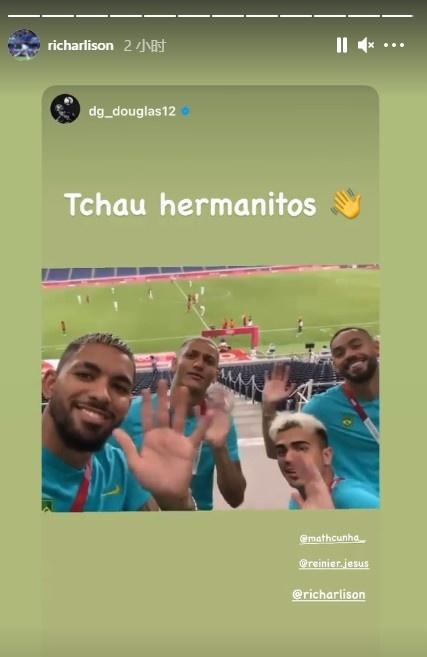 在阿根廷确认无缘晋级后,巴西中场道格拉斯-路易斯在Instagram上晒出一张巴西球员的合照,他们在照片中做挥手动作,并配文“再见了伙伴。”