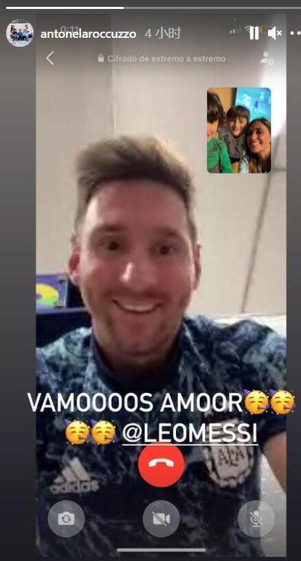 24直播网讯 赛后,梅西第一时间与妻子和三个儿子通视频电话,分享自己胜利的喜悦。妻子安东内拉则是将视频截图分享到个人社交媒体,并对梅西示爱:加油我的爱!