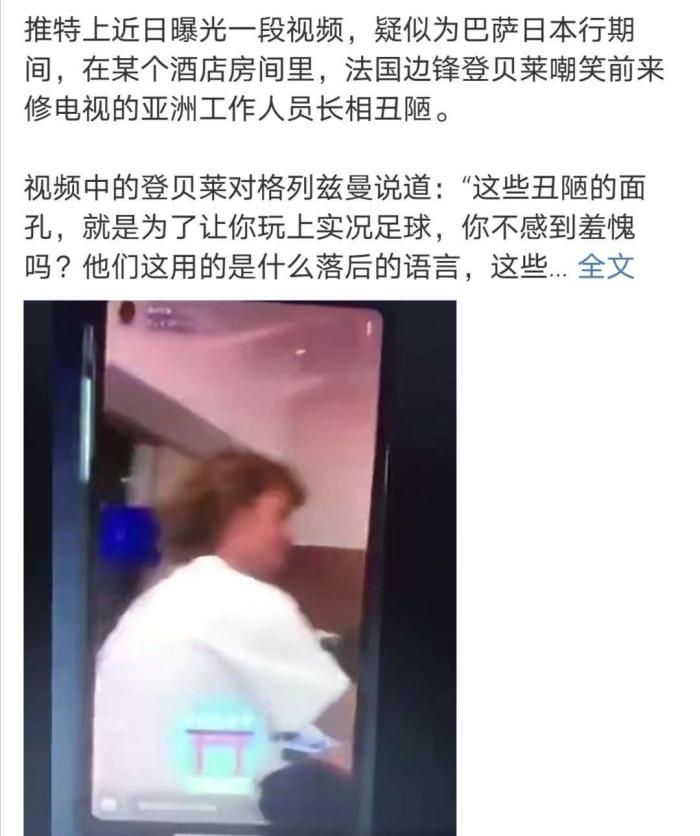 有意思的是,韩国网友在随后也加入到了舆论战局当中。他们表示反对这种歧视亚裔的行为,就目前的情况来看,登贝莱和格列兹曼在日韩两国网友的心中,人设已经彻底崩塌。其实登贝莱一直在球迷心中的形象就比较负面,抛开其球场上的表现不谈。他在之前也有涉及政治以及地域歧视等方面的言论。只不过这一次是确确实实被实锤,而且推特上有视频证据。