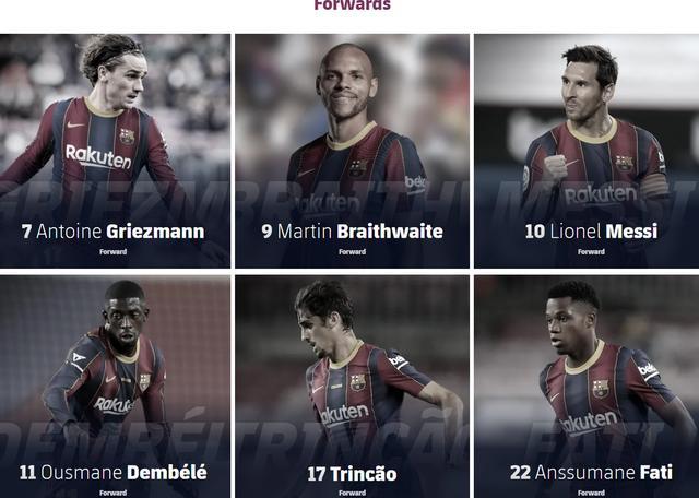巴萨官网上“一线队阵容”列表里,梅西的名字仍在“前锋”分组当中,但西甲联赛官网上,巴萨阵容里已找不到梅西的资料。