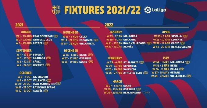 2021-22赛季巴萨赛程: 10月连续迎战马竞&皇马