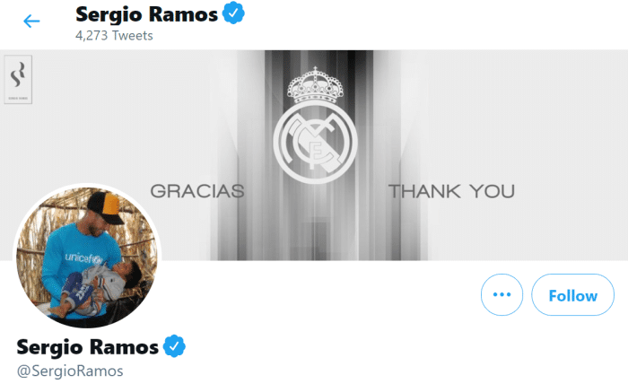 拉莫斯更新社交媒体封面: 谢谢你, 皇马!